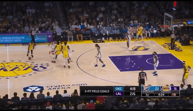 这是蒂耶罗NBA生涯第一记三分。他此前13场常规赛,三分线外4投0中,连夏季联赛都没开张过。湖人去年用双向合同签下这位落选秀,看中的就是他2米06的臂展和换防弹性,进攻算是赠品。